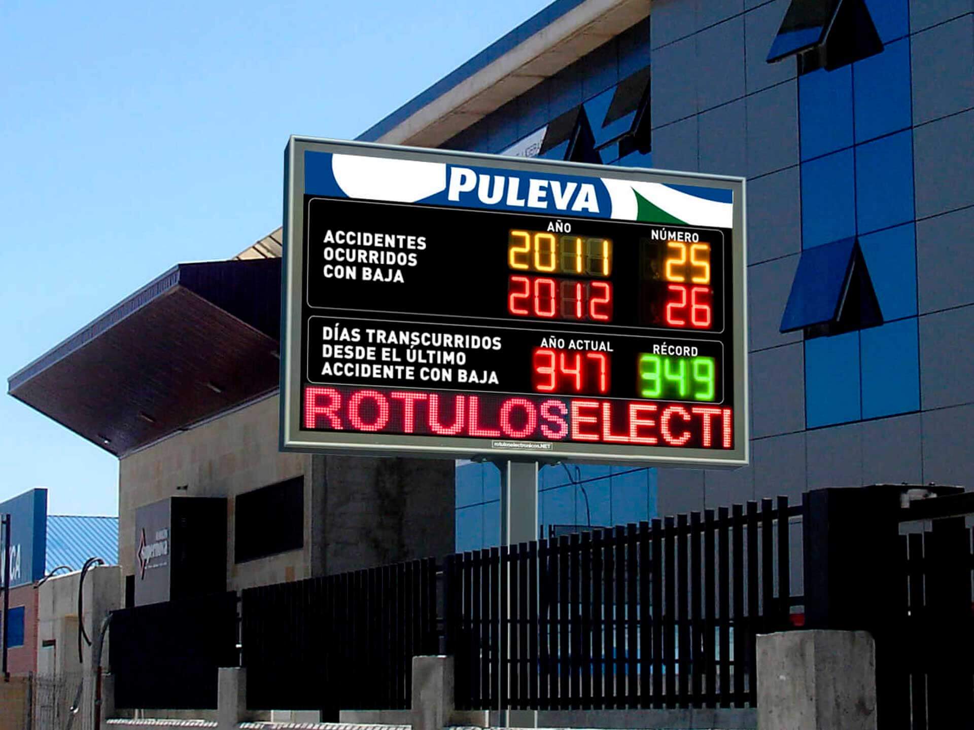 Diferentes colores, formatos y hasta tamaños se pueden seleccionar en un Letrero de Días sin Accidentes que en síntesis es un sistema contador con números muy luminosos y visibles desde cualquier parte de la empresa, que puede ser controlado de forma manual e incluso de forma automática.