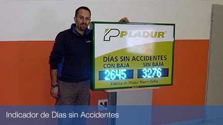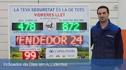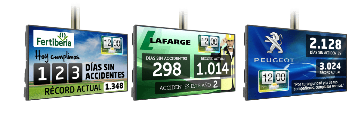 Muestre los días transcurridos desde el último accidente laboral, récord a superar, valores personalizables, textos que permitan facilitar todo tipo de información y mucho más.