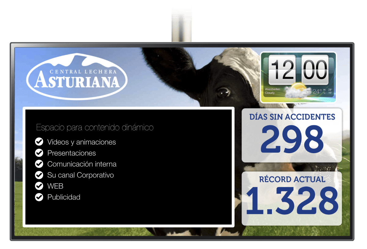 Pueden mostrar en directo todo tipo de información proveniente de sondas remotas, sistemas informáticos, bases de datos, XML, etc. Además de reproducir videos corporativos a todo color.