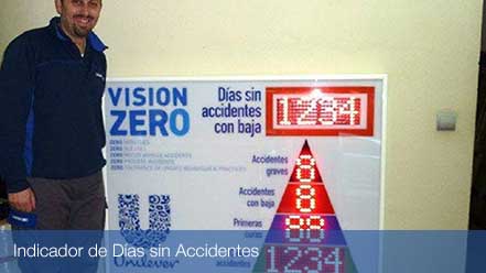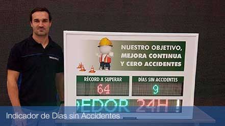 Estas pantallas LED se componente de cientos de diodos de diversos colores que están pensados para aumentar la concienciación de los trabajadores en el cumplimiento de las metas de días sin accidentes. Además, estas pantallas pueden ser usadas en combinación con otras pantallas para difundir información de carácter preventivo para fomentar la protección por parte de los trabajadores.